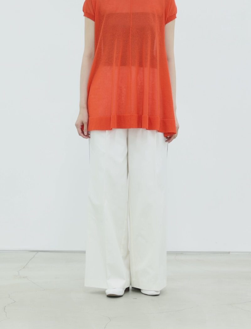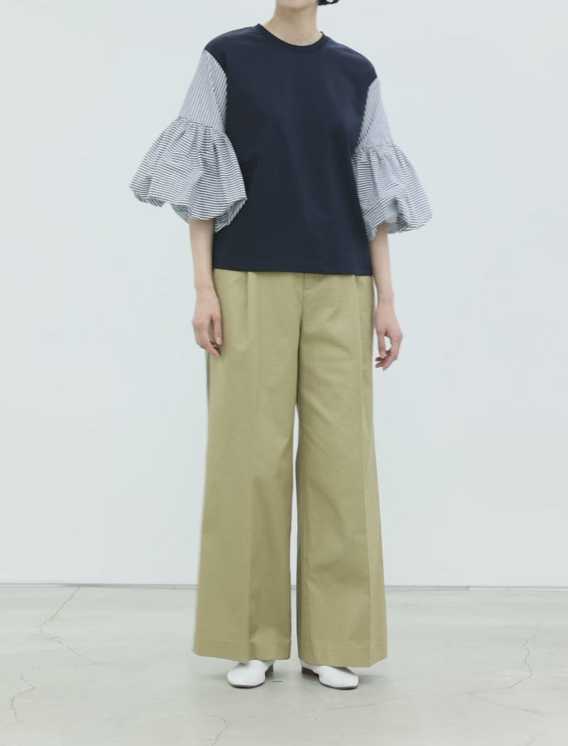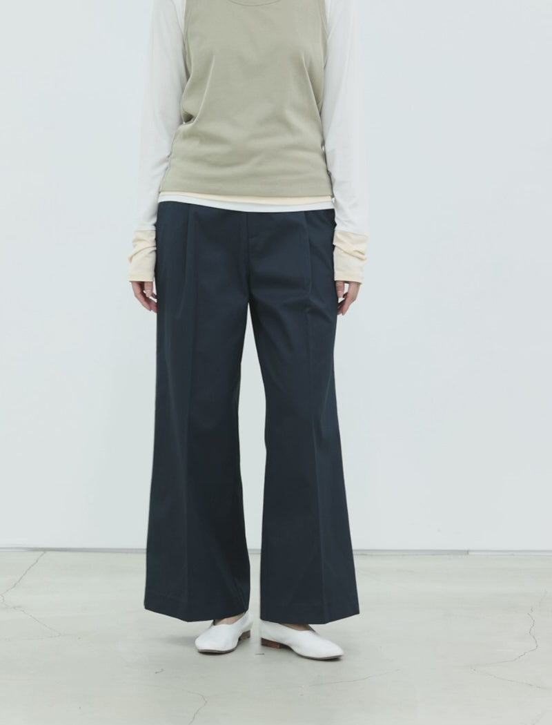 適度なハリとコシのあるコットン生地を使用した、ワンタック入りのワイドシルエットパンツ。