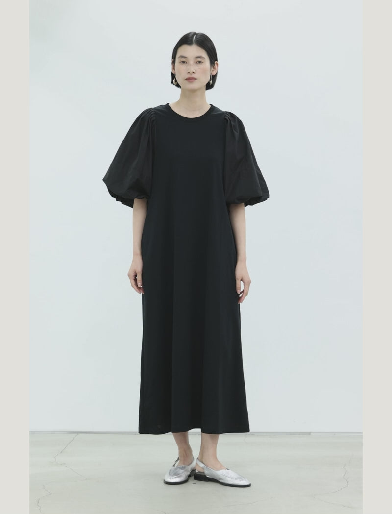袖にはタイプライター生地を組み合わせ、ボリュームのあるパフスリーブに。