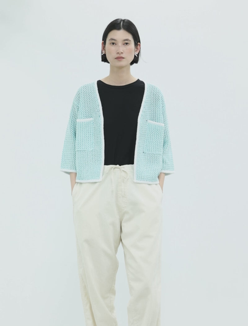 LINEN BLENDED MESH CARDIGAN