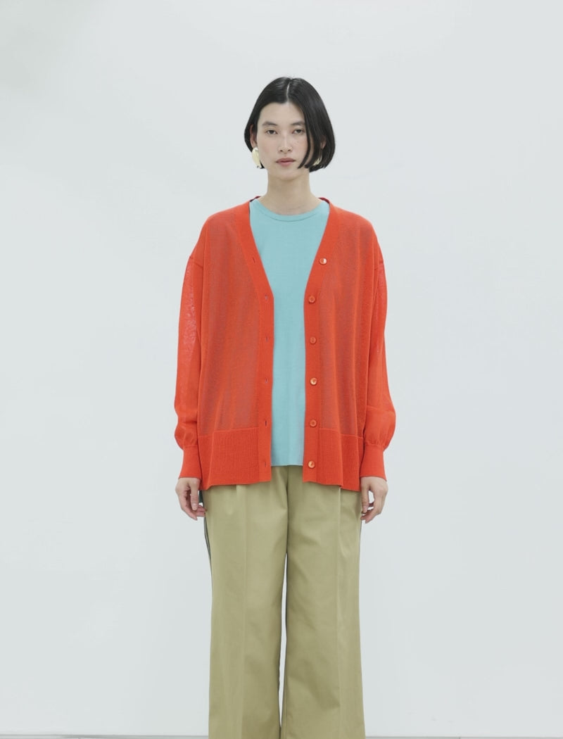 清涼感のあるタッチと、透けすぎない程よいシアー感が特徴のカーディガン。